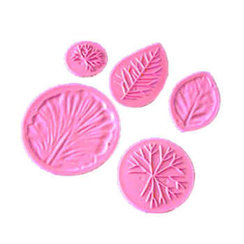 Juego plástico (de color rosa), de 5 marcadores para el estampado profundo de nervaduras en hojas hechas en pastillaje, pasta goma, porcelana fria, etc.En este set se provee cinco modelos diferentes de nervaduras para utilizar a su elección.