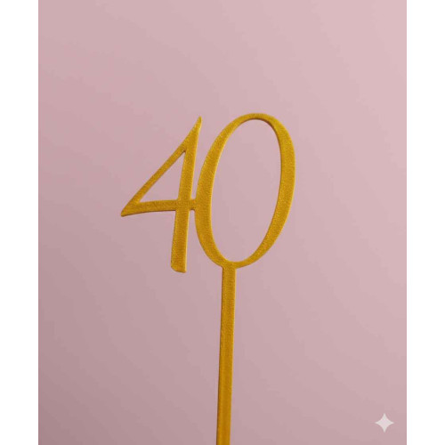 **DESCRIPCION:** Topper decorativo con el número "40" en diseño tridimensional y color dorado, ideal para decorar tortas y postres en celebraciones de cumpleaños número 40.