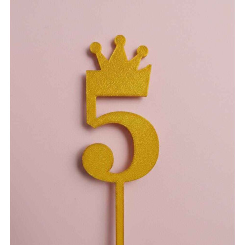 TOPPER NUMERO 5 CORONA DORADO 3D