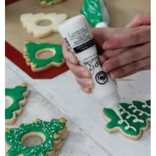 USOS: Decoración de tortas, cupcakes, galletas y postres. Ideal para escribir mensajes, hacer líneas, bordes y detalles decorativos precisos.