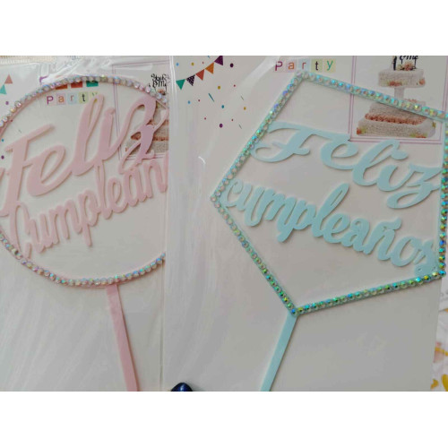 TOPPER FELIZ CUMPLEAÑOS CON STRASS