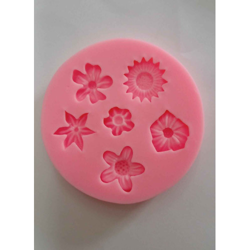 **DESCRIPCION:** Molde de silicona alimentaria con 6 cavidades con diferentes diseños de flores para crear decoraciones comestibles. Ideal para chocolate, fondant, pasta de goma y otras preparaciones de repostería.