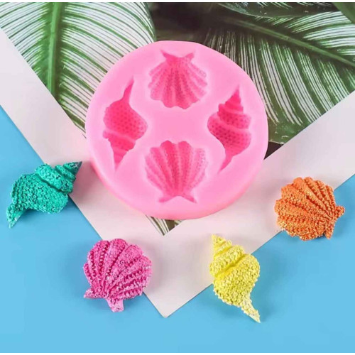 DESCRIPCION: Molde de silicona con 4 cavidades que incluye 2 formas de ostras y 2 formas de caracoles marinos. Ideal para crear decoraciones temáticas del mar en repostería y confitería.