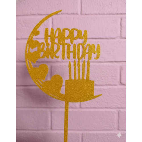 TOPPER HAPPY BIRTHDAY MEDIA LUNA DORADO 3D