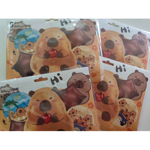 KIT GLOBOS ANIMALITOS CARPINCHO/CAPIBARA MANZANA 5 PIEZAS