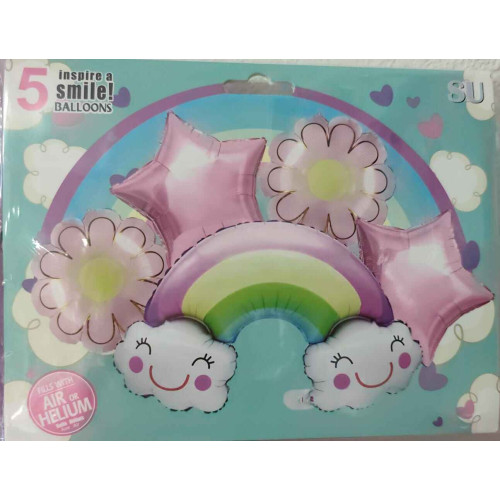 KIT GLOBOS DECO ARCO IRIS/NUBE/ESTRELLA/FLOR 5 PIEZAS