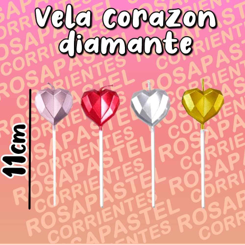 BLISTER VELA CORAZON DIAMANTE PLATEADA 11 cm