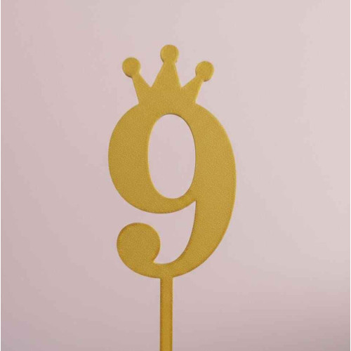 TOPPER NUMERO 9 CORONA DORADO 3D